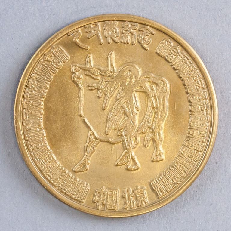 Chinese token. Commemorating the Chinese Zodiac. Featuring ox. Diameter: 4.5 cm. 26 grams