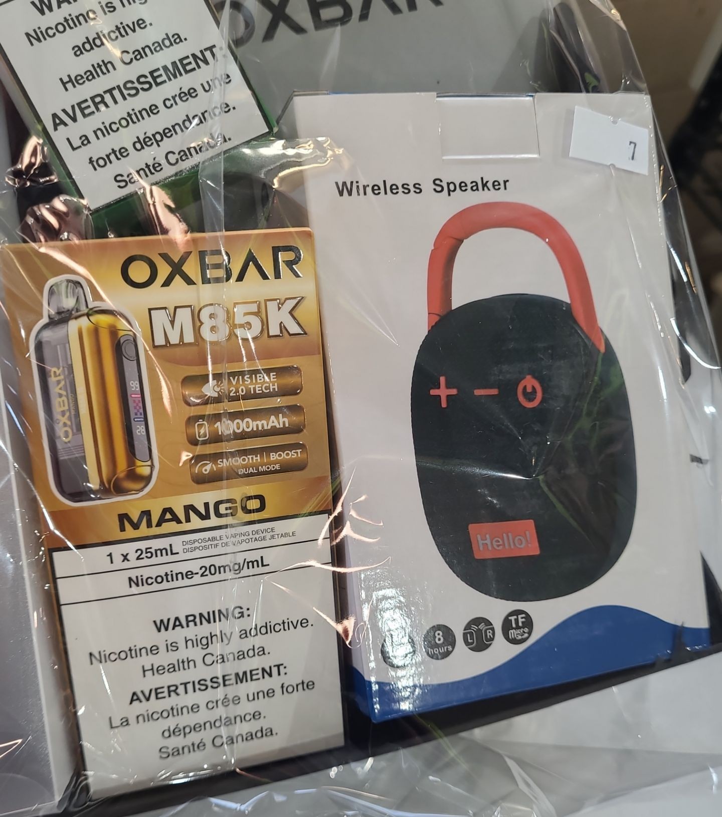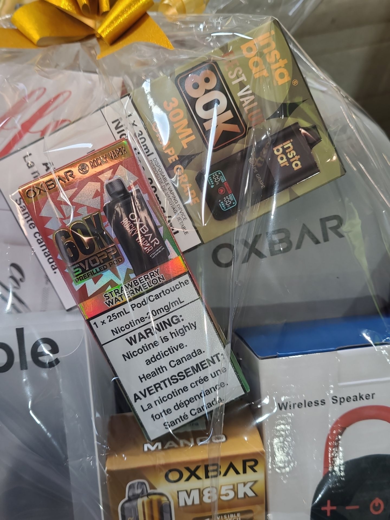 Oxbar/Instabar Vapes,Wireless Speaker Bl/Red , Travel Pillow,Coffee Flask, Water Bottle Valued: $220