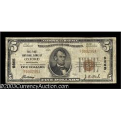 <TABLE cellSpacing=0 cellPadding=0 width="100%" bgColor=#000000 border=0><TBODY> <TR><TD width="100%"><TABLE cellSpacing=1 cellPadding=3 width="100%" border=0><TBODY><TR><TD width="100%" bgColor=#79735c><FONT face=arial color=#ffffff size=3><B>Description</B> </FONT></TD></TR><TR><TD width="100%" bgColor=#ffffff><FONT face=arial size=2><B>Oxford, MS</B></I> - $5 1929 Ty. 1 <B>The First NB</B></I> Ch. # 9865<BR>A nice small size example from this rare bank that was the only issuing institution in this charming town that is the home of the University of Mississippi. Only eight small size notes from here appear in the census. <B>Fine.</B></I> (600-900 ) </FONT></TD></TR></TBODY></TABLE></TD></TR></TBODY></TABLE><BR><TABLE cellSpacing=0 cellPadding=0 width="100%" bgColor=#000000 border=0><TBODY><TR> Important notice: Heritage usually auctions material at the rate of 200-250 lots per hour. On some occasions eBay Live bid software or the Internet may not be able to keep up with the pace of the auction. We recommend placing a realistic absentee bid now as insurance to avoid disappointment. Occasionally the auctioneer may eliminate or reject an eBay Live bid, and the auctioneer may also reopen a lot after the close of the eBay live bidding (usually because we missed an audience bid), and may reject your bid even if it shows you as the winning bidder. By bidding via eBay Live, you agree that Heritage may award the lot to another bidder at its sole discretion under the circumstances described above or any other reasonable circumstances. Also please note that all Heritage lots purchased through eBay Live carry a 20% Buyer's Premium. Please make sure you read the Terms and Conditions before you bid.</TR></TBODY></TABLE>