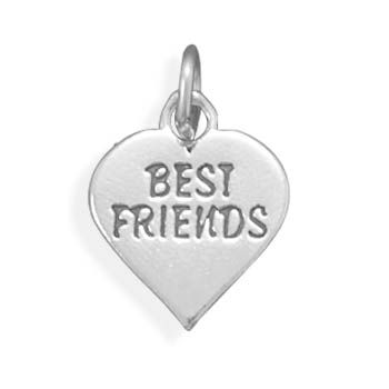 Oxidized sterling silver heart shaped "Best Friends" charm. The charm measures approximately 13mm. .925 Sterling Silver