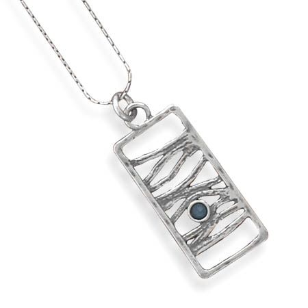 17.5" chain necklace and a 30mm x 11.5mm oxidized sterling silver pendant with 3mm blue quartz. .925 Sterling Silver