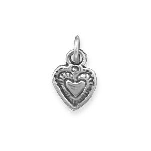 Oxidized sterling silver heart charm. The heart measures approximately 7.5mm. The charm is 7.5mm x 14mm. .925 Sterling Silver