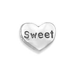 Oxidized sterling silver heart shaped story bead with "sweet" across it. The story bead measures 9mm. This Story Bead fits on chains up to 3.8mm wide. .925 Sterling Silver