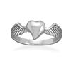 Oxidized sterling silver ring with a heart and wing design. The heart measures 7mm. This ring is available in whole sizes 5-9. .925 Sterling Silver