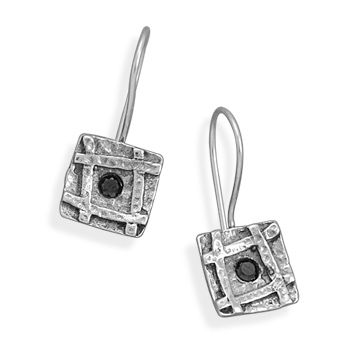 Square oxidized sterling silver wire earrings with a 3mm faceted black onyx center. Earrings hang approximately 25mm. .925 Sterling Silver