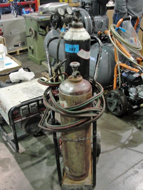 Oxy acetaline welding set; 2 tanks, gauge, torch
