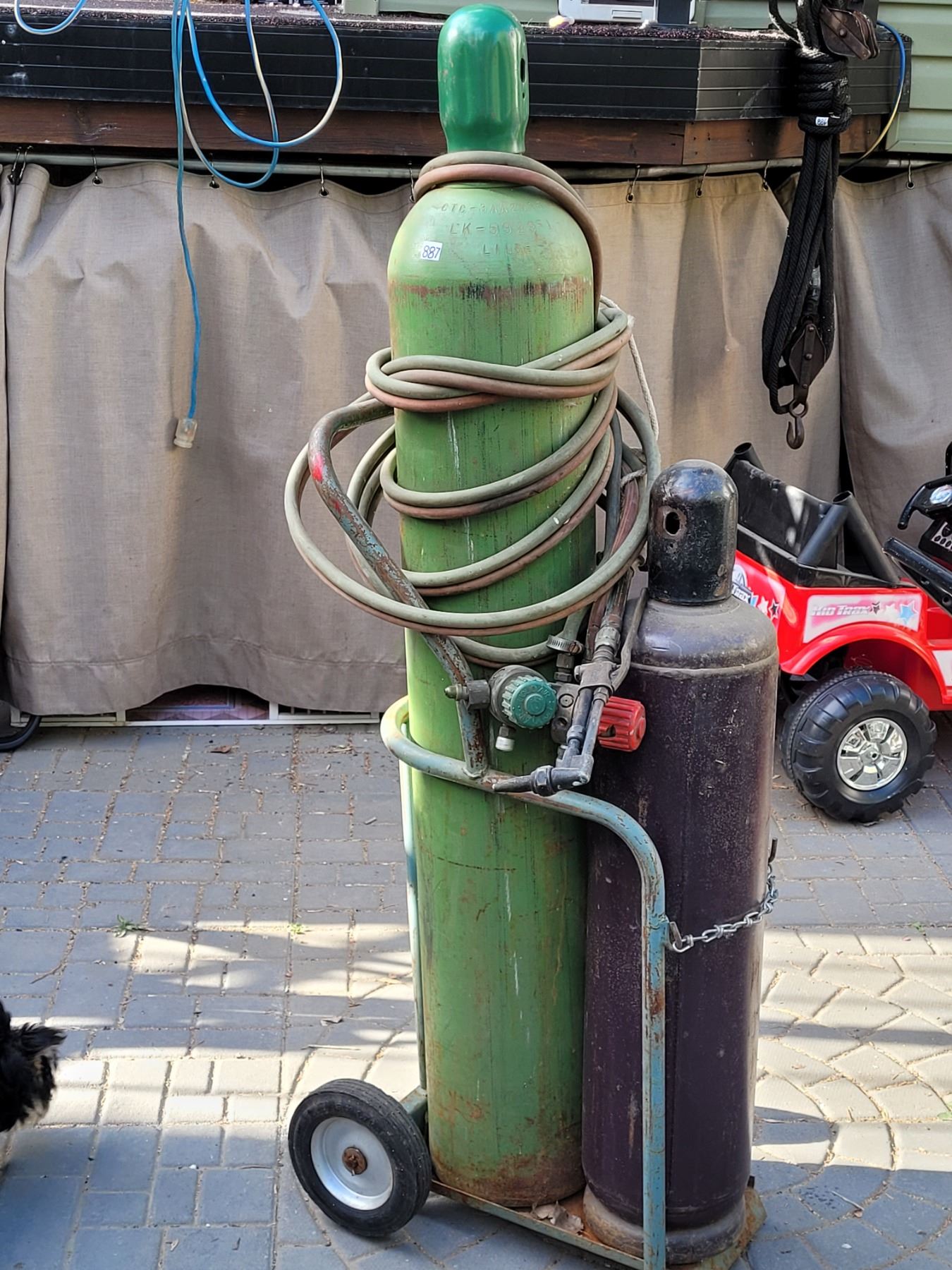 Oxygen & acetylene tanks, hose & torch. Not used for some time. Condition unknown.