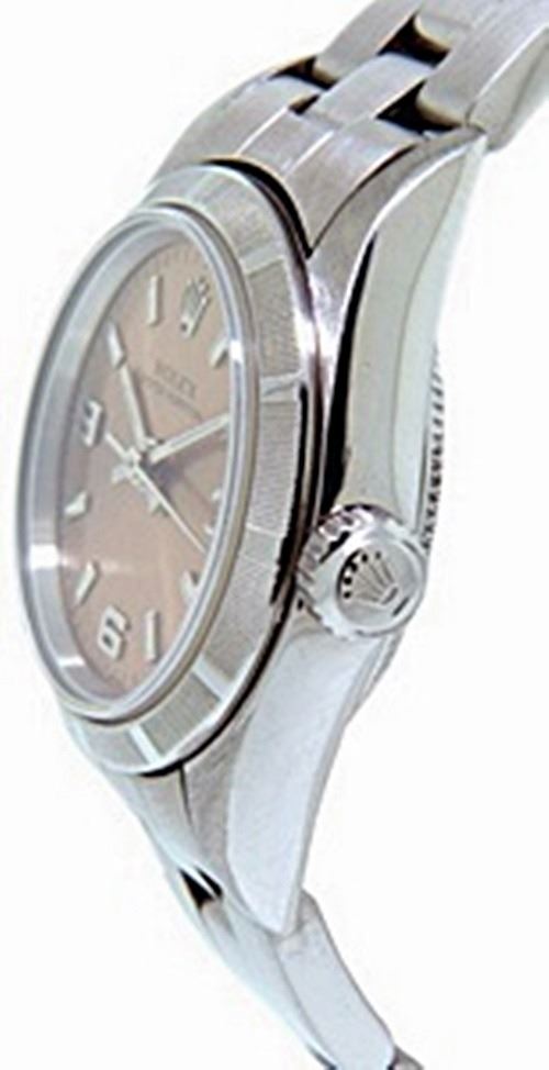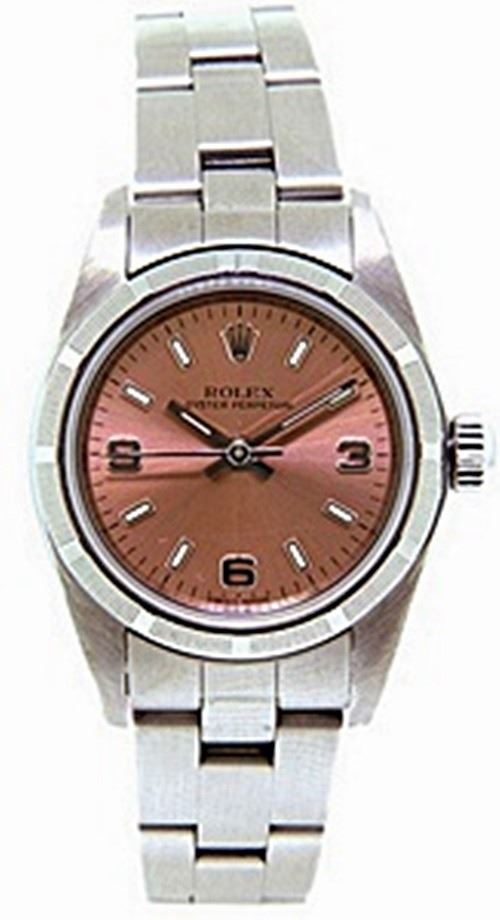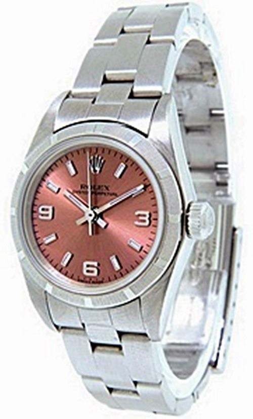 Manufacturer: Rolex , Model Name: Oyster Perpetual , Model Number: 76030 , Gender: Women's , Circa: 2001 , Condition: Pre-Owned Polished and Overhauled, Case: Stainless Steel 25mm width , Movement: Automatic , Dial: Salmon Color , Bezel: Stainless Steel , Crown: Stainless Steel , Bracelet/Strap: Oyster Stainless Steel Fits up to 6 1/2 Inches , Crystal: Sapphire , Calander: No Date , Box/Papers: NONE
