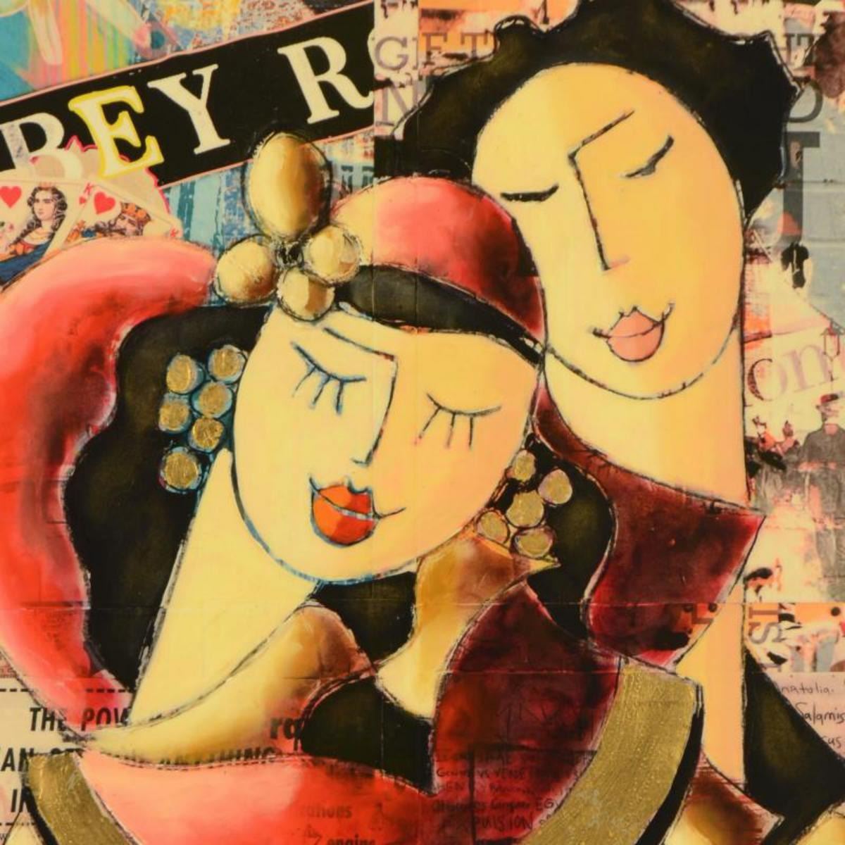 Oz El Hai, "Love Stronger than Time (v4)" Original Mixed Media Painting on Board; Hand Signed; Certi