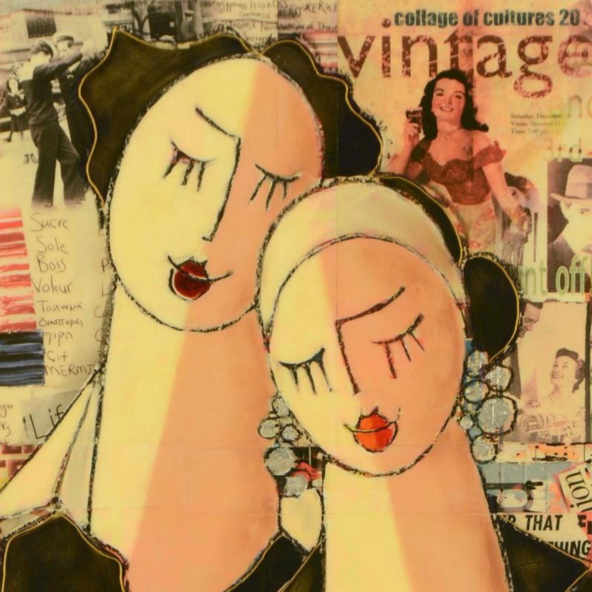 Oz El Hai, "Together Till the End of Time" Original Mixed Media Painting on Board, Hand Signed with