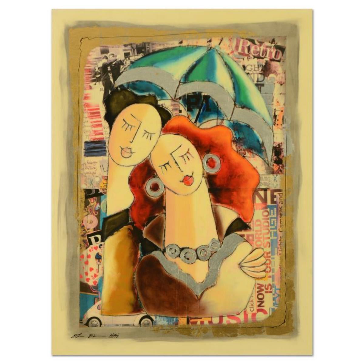 Oz El Hai, "Under the Umbrella (v2)" Original Mixed Media Painting on Board; Hand Signed; Certificat