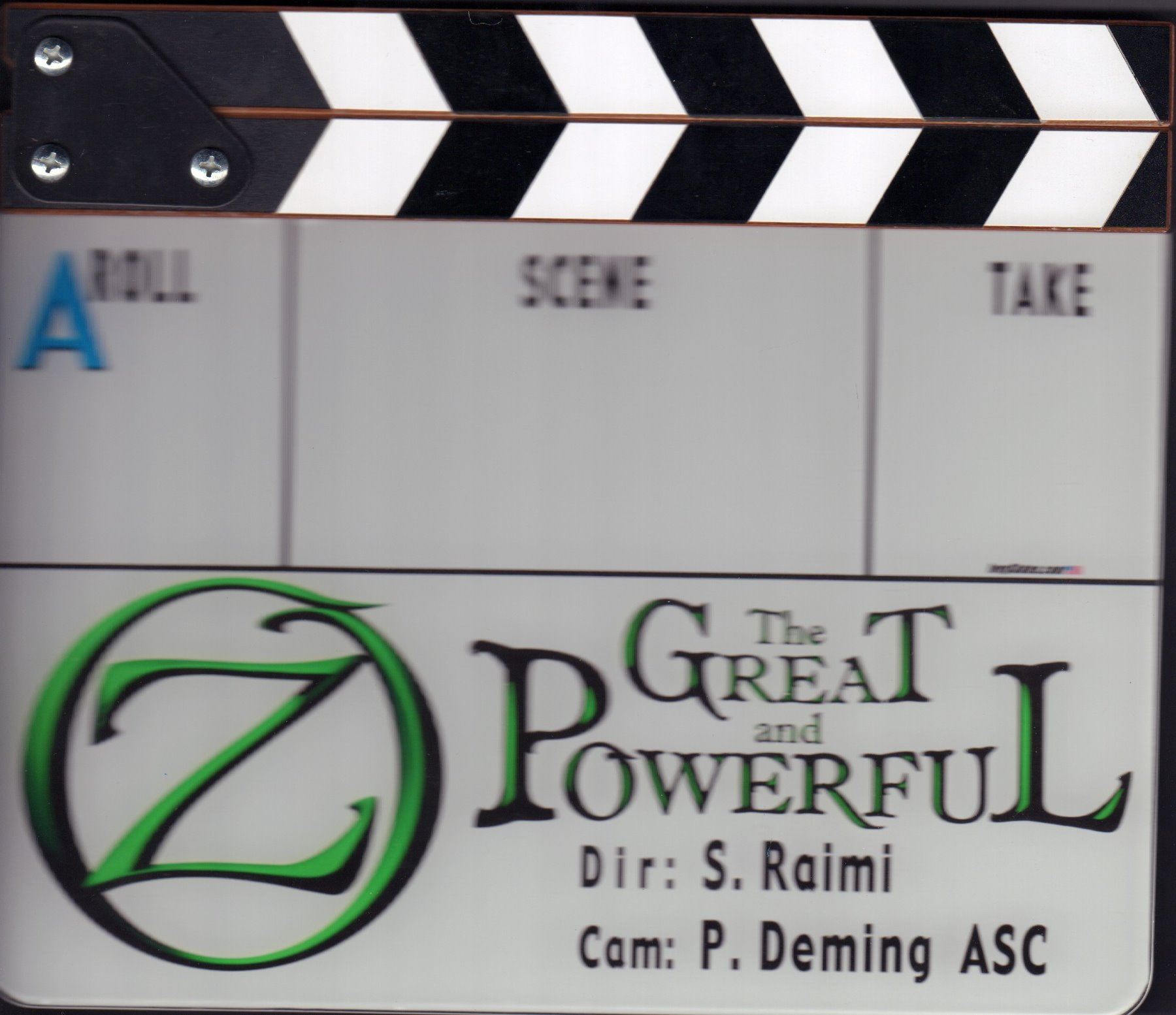 Original clapboard used on the set during the filming of Oz: The Great and Powerful. The board was used for A Roll footage during the film directed by Sam Raimi and shot by P.Deming. It's in excellent condition. All items come with a certificate of authenticity good for the life of the piece.
