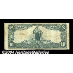Ozark, AL - $10 1902 Plain Back Fr. 624 The First NB Ch. # (S)7629This rare bank issued large notes only. The Loegler example, which was missing a corner and possessed a disfiguring rust stain covering part of the front realized over $4300 when it sold last year. This Fine-Very Fine specimen, which is light years nicer, will likely realize double or triple that figure. <BR><BR><B>Important notice:</B> Heritage usually auctions material at the rate of 200-250 lots per hour. On some occasions eBay Live bid software or the Internet may not be able to keep up with the pace of the auction. We recommend placing a realistic absentee bid now as insurance to avoid disappointment. Occasionally the auctioneer may eliminate or reject an eBay Live bid, and the auctioneer may also reopen a lot after the close of the eBay live bidding (usually because we missed an audience bid), and may reject your bid even if it shows you as the winning bidder. By bidding via eBay Live, you agree that Heritage may award the lot to another bidder at its sole discretion under the circumstances described above or any other reasonable circumstances. Since eBay bids are not shown to us until we open the lot on the floor, we treat those bids just like floor bids. In most cases the floor responds before the eBay bid is presented to us, due to Internet lag time, so for consistency we have made it a policy that floor bids are always considered first over tie eBay live bids. Also please note that all Heritage lots purchased through eBay Live carry a 20% Buyer's Premium. Please make sure you read the Terms and Conditions before you bid. <BR><BR><B>IMPORTANT ANNOUNCEMENT ABOUT RESERVES:</B> Heritage now divulges all reserves on its web site 7 days before every auction. If you want to know whether the reserve on this lot has been met, and if not, what the reserve amount is, please visit this lot page on the HeritageCoin.com web site, or email: bid@HeritageGalleries.com