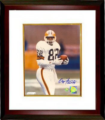Nicknamed "The Wizard of Oz", Ozzie Newsome was the 23rd pick in the 1978 NFL Draft for the Cleveland Browns. He was named the Browns' Offensive Player of the Year his rookie year, the first time in 25 years that a rookie had received that honor. Ozzie earned All-Pro honors the following year, 1979, and again in 1984. Newsome went to the Pro Bowl in 1981, 1984 and 1985. In 1986, In 1999 Newsome was inducted into the Pro Football Hall of Fame. Ozzie Newsome has hand autographed this Cleveland Browns 8x10 Photo with HOF 99 inscription. Certificate of Authenticity from Athlon Sports Collectibles. Custom White Mat and Premium Mahogany Color Framed as shown.