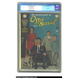 Ozzie and Harriet #1 (DC, 1949) CGC VF- 7.5 Off-white pages. We haven't seen very many copies of this premiere issue, and Gerber rates it as an "uncommon" book. The famous radio and television family are featured in a photo cover here, eventual teen rock 'n' roller, Ricky, looking spiffy in a sport coat and a burr cut. This is the highest-graded copy of issue #1 that CGC has certified to date. Overstreet 2002 VF 8.0 value = $597. Important notice: We expect to be auctioning lots at the rate of 200-250 per hour. Sometimes eBay Premier live bid software cannot keep up with that pace, so we strongly recommend that you place a realistic proxy bid now as insurance to avoid disappointment. Also please note that all Heritage/CAA lots purchased through eBay Premier carry a 20% Buyer's Premium. Please make sure you read the Terms and Conditions.