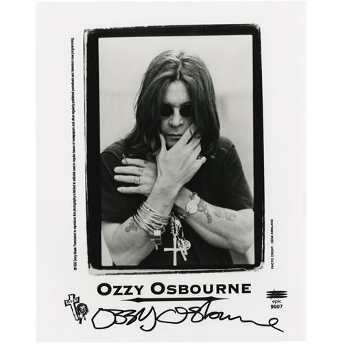 <B>Ozzy Osbourne Signed Photo.</B></I> A b&w 8" x 10" photo of Osbourne, circa 1995, signed by him in black marker. In Excellent condition.<BR><BR><b>Shipping:</b> Flat Material, Small (<a target="_blank" href="http://www.heritageauctions.com/common/shipping.php">view shipping information</a>) <BR><BR><B>Important notice