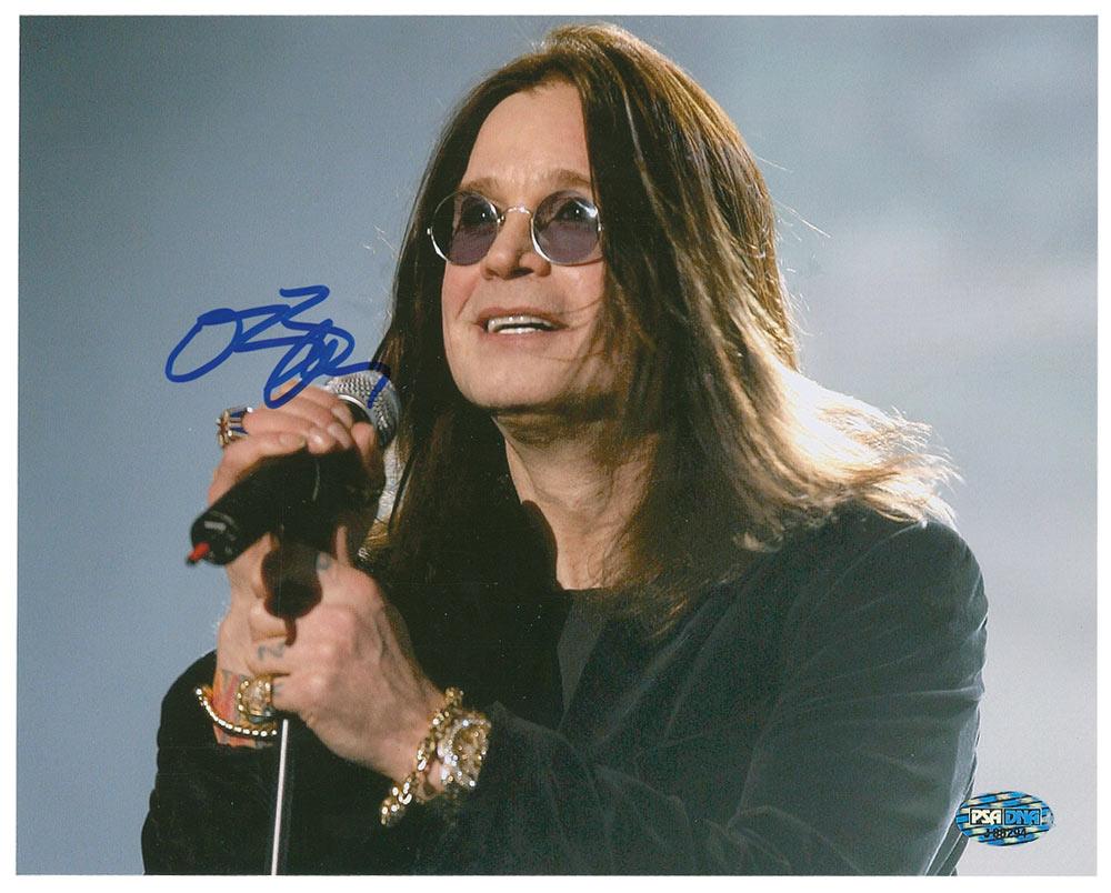 Color satin-finish 10 x 8 photo of Osbourne standing at the mic, signed in blue felt tip “Ozzy Osbourne.” In fine condition with a PSA/DNA authentication label affixed. Accompanied by a certificate of authenticity from PSA/DNA.