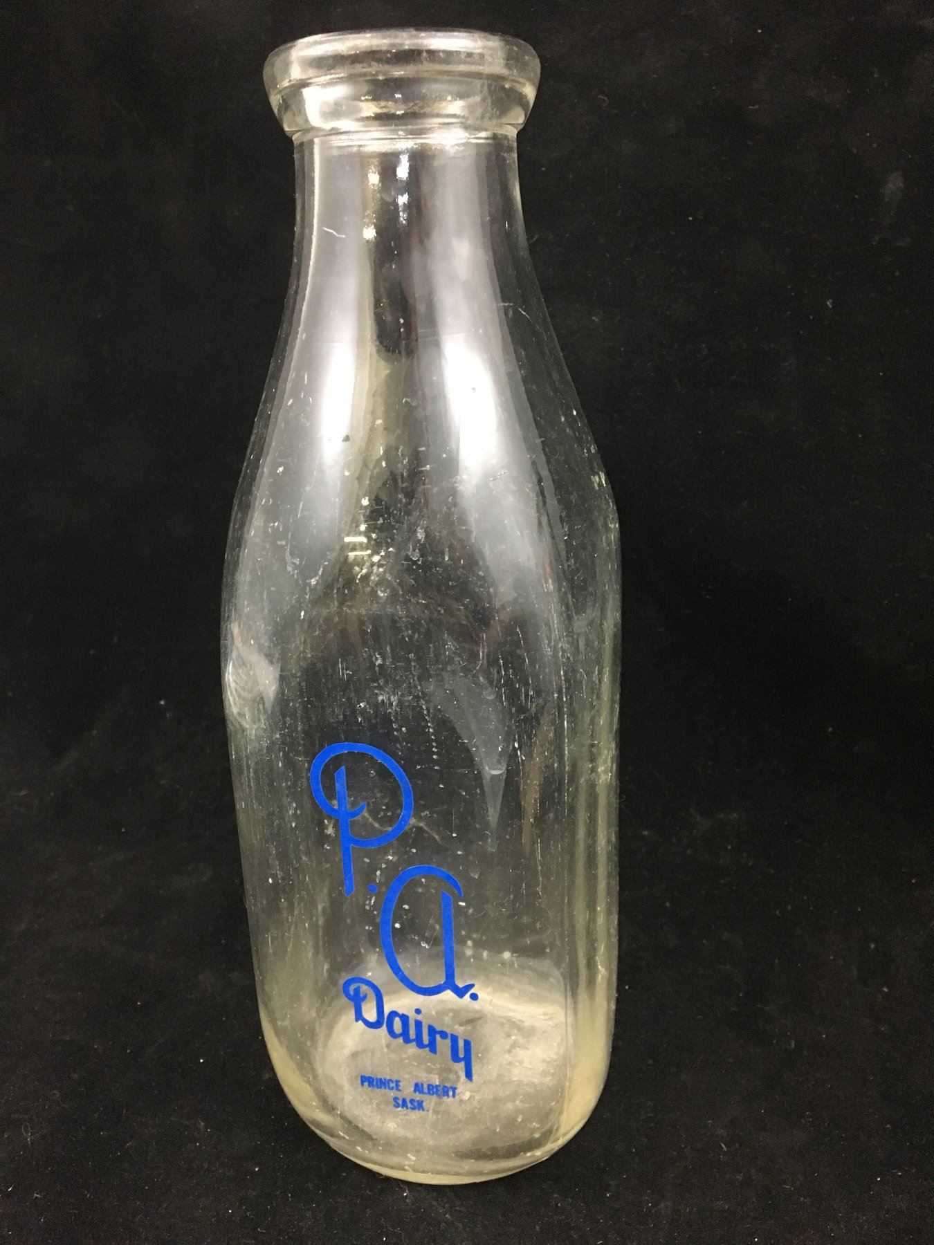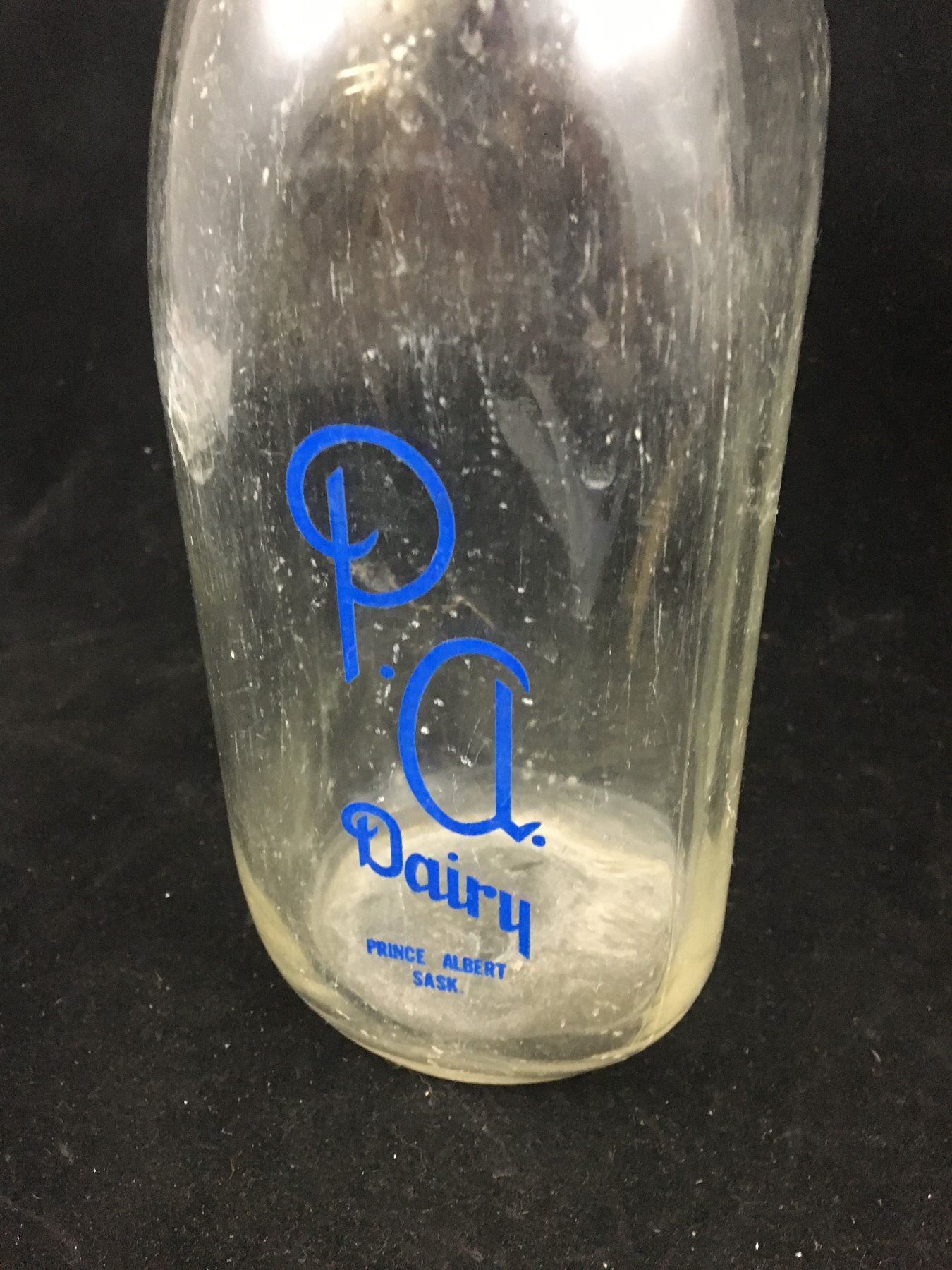 P.A DAIRY, PRINCE ALBERT SK. ADVERTISING MILK BOTTLE (1 QUART) *VINTAGE*