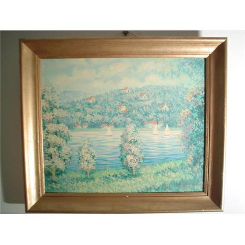 Peter Arnoux- 1904-1968(American)Listed artist who is famous for his impressionist & pointillist style. O/C in very good condition. Framed & measures 20"x24".Beautiful pastel colors.
