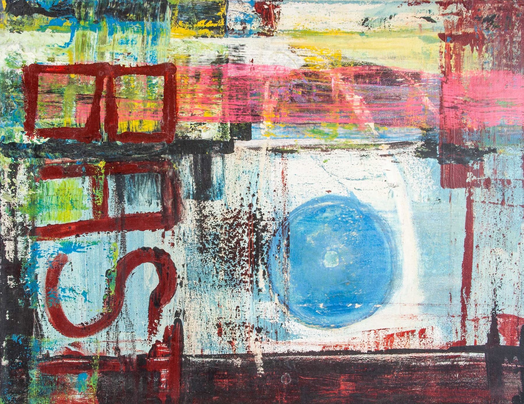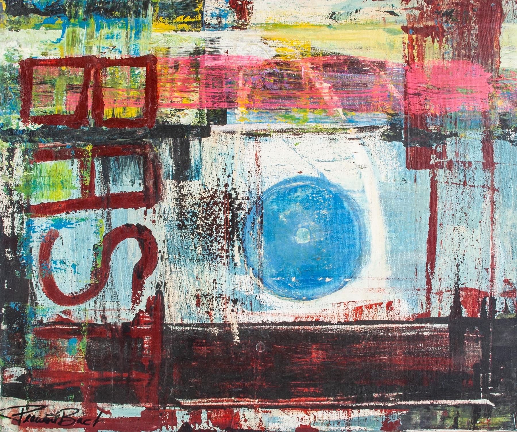 Oil on canvas. Featuring abstract composition and enttied, "BASTA" (That is Enough!). Signed LL and attr. P. Beck. 24 x 20 in. (61 x 51 cm)