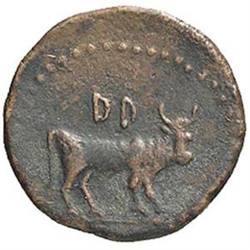 P. Dastidius e L. Cornelius. AE 21 mm. ca. 44 a.C. Buthrotum, Achaea. D/ P DASTIDIVS L CORNELIVS. Testa laureata di Zeus a destra. R/ Toro stante a destra. Sopra, DD. In esergo: [II VIR Q A]. RPC 1378. gr. 6.21 R. AE. Bel BB+. Esemplare molto attraente. Patina cuoio.