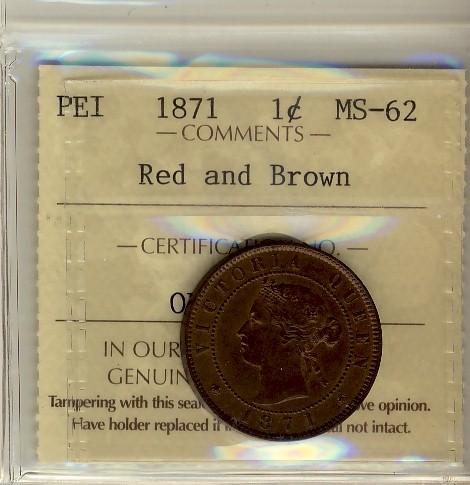 P.E.I. 1871 1¢ ICCS MS62 RB