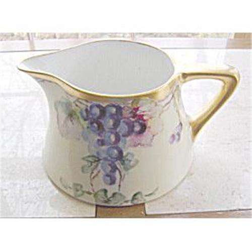 Limoges Cider Pitcher with Hand Painted Grapes on the vine, it is 5" tall, in excellent condition made by P and P Limoges.. <BR>