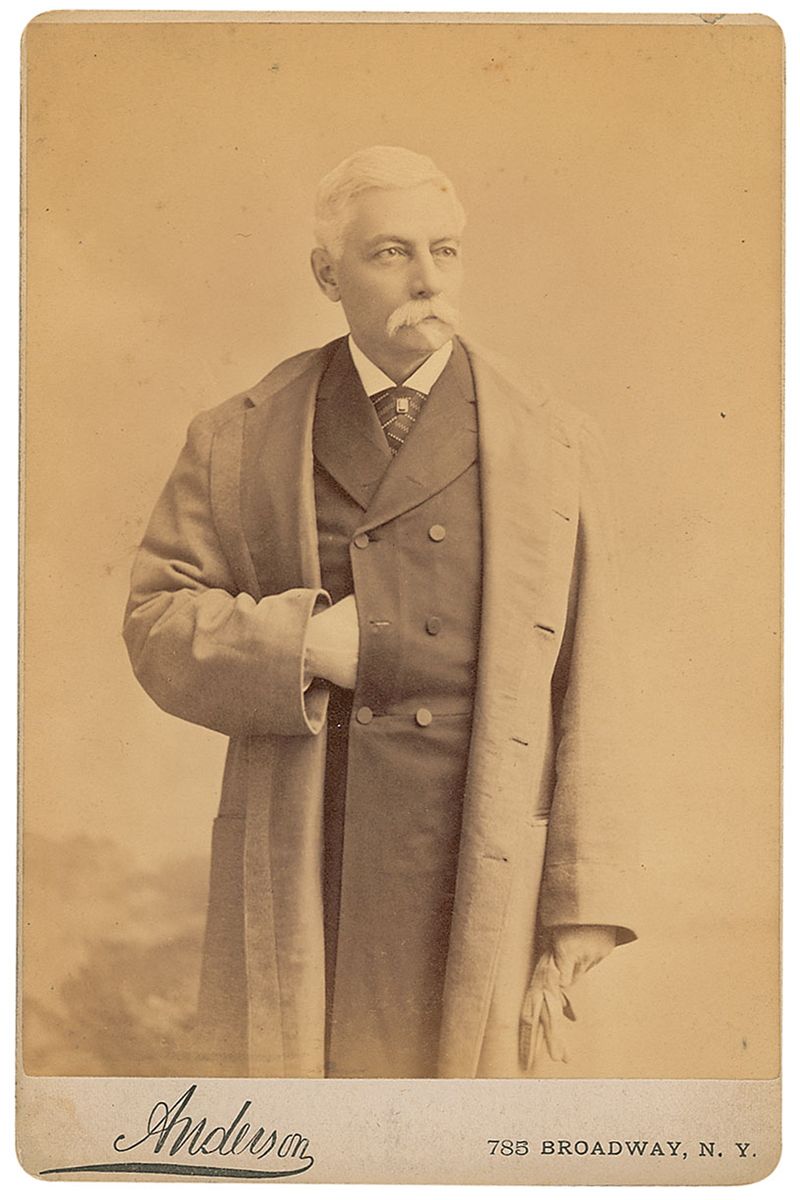 Distinguished original 4 x 6.5 cabinet photo of Beauregard in a suit and overcoat, his hand tucked into his jacket by Anderson of New York, identified on the reverse in pencil, “Gen. G. T. Beauregard.” In fine condition, with some light edge dings and surface marks, and light soiling to reverse.