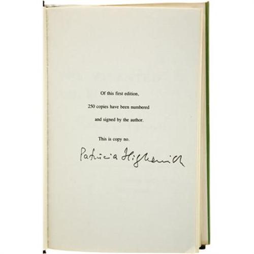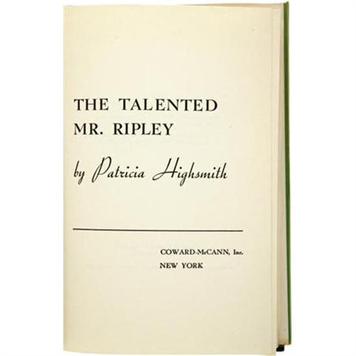 <B>Patricia Highsmith: Signed Limited First Edition of <I>The Talented Mr. Ripley</B></I></B></I> (New York: Coward-McCann, Inc., 1955), first edition, 252 pages, black cloth with green spine lettering, 8vo (5.5" x 8.25"), dust jacket. An unnumbered copy of one of the 250 numbered first editions, and signed "<I>Patricia Highsmith</B></I>" on the limitation page. About fine in an about fine unclipped dust jacket.<BR><BR><b>Shipping:</b> Books & Catalogs (<a target="_blank" href="http://www.heritageauctions.com/common/shipping.php">view shipping information</a>)
