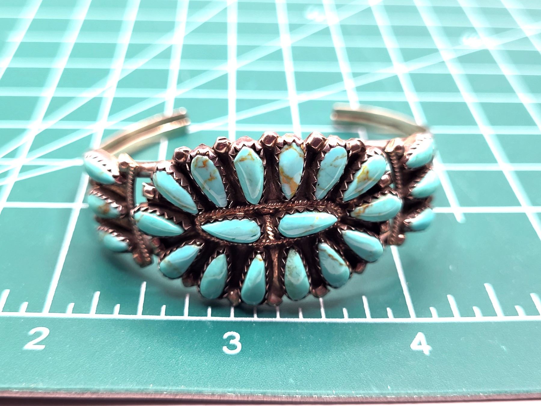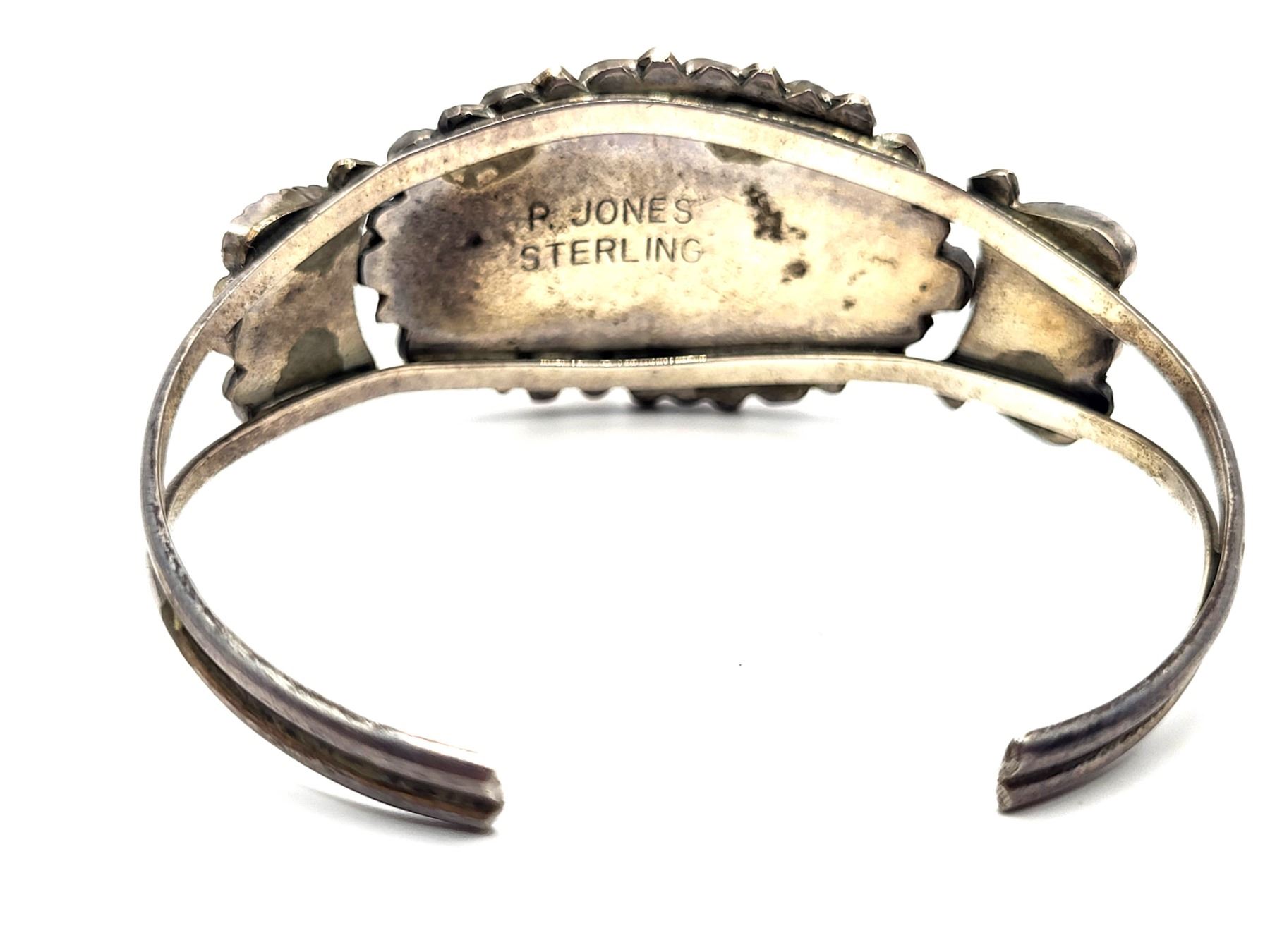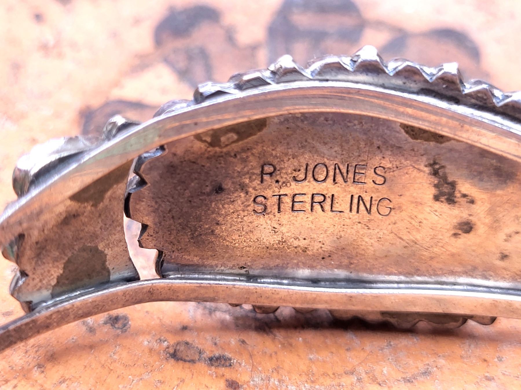 Beautiful turquoise and sterling silver signed P. Jones cuff.