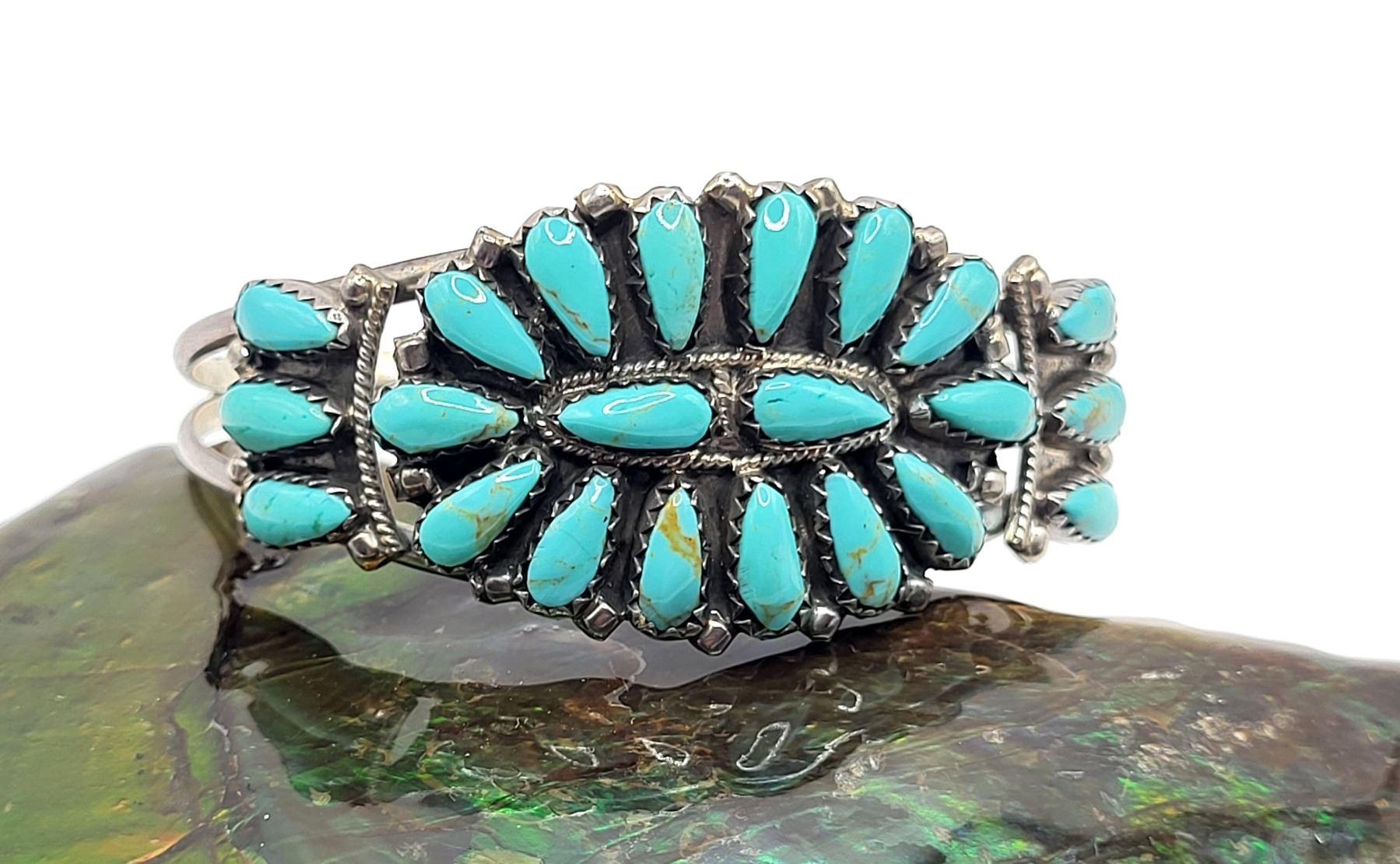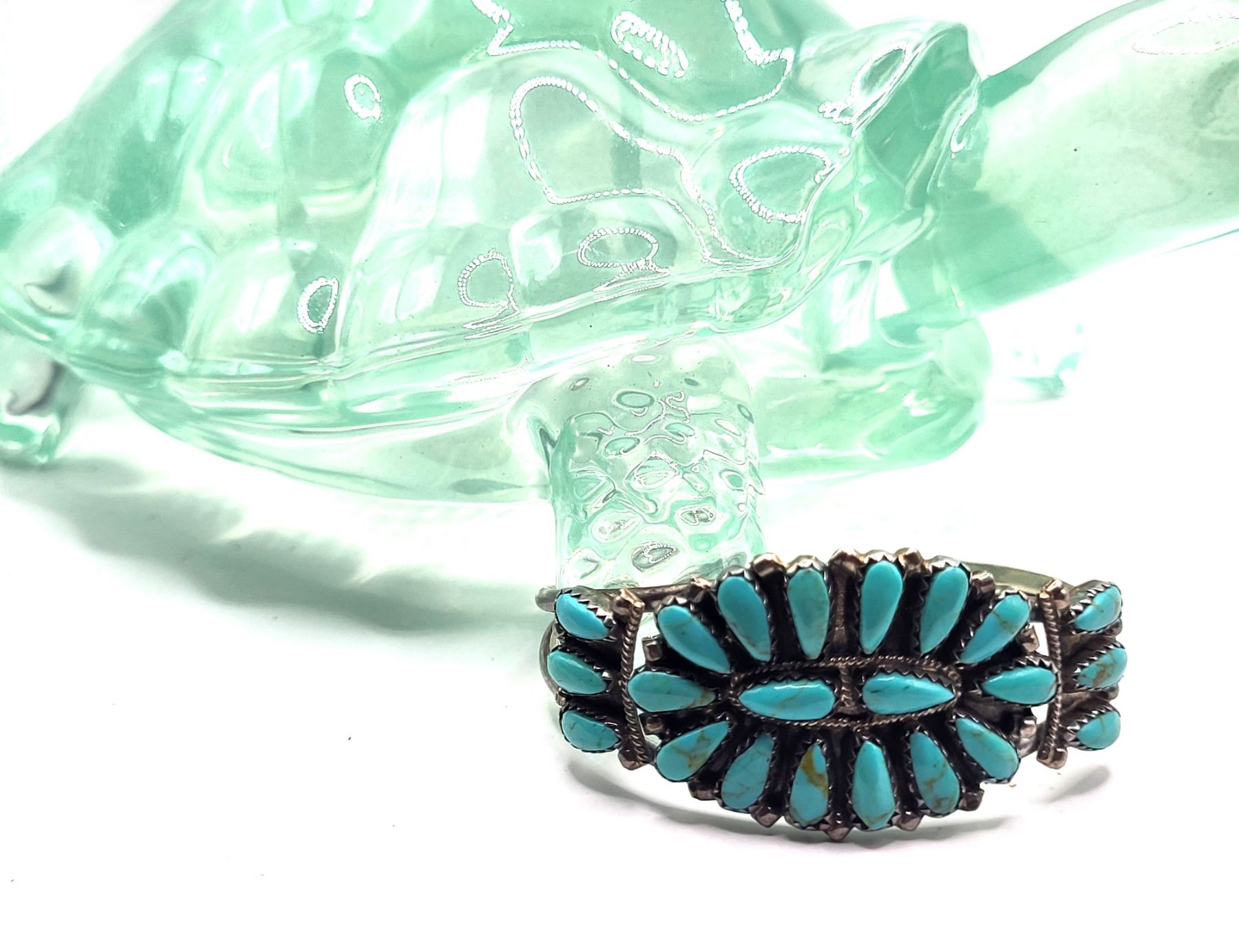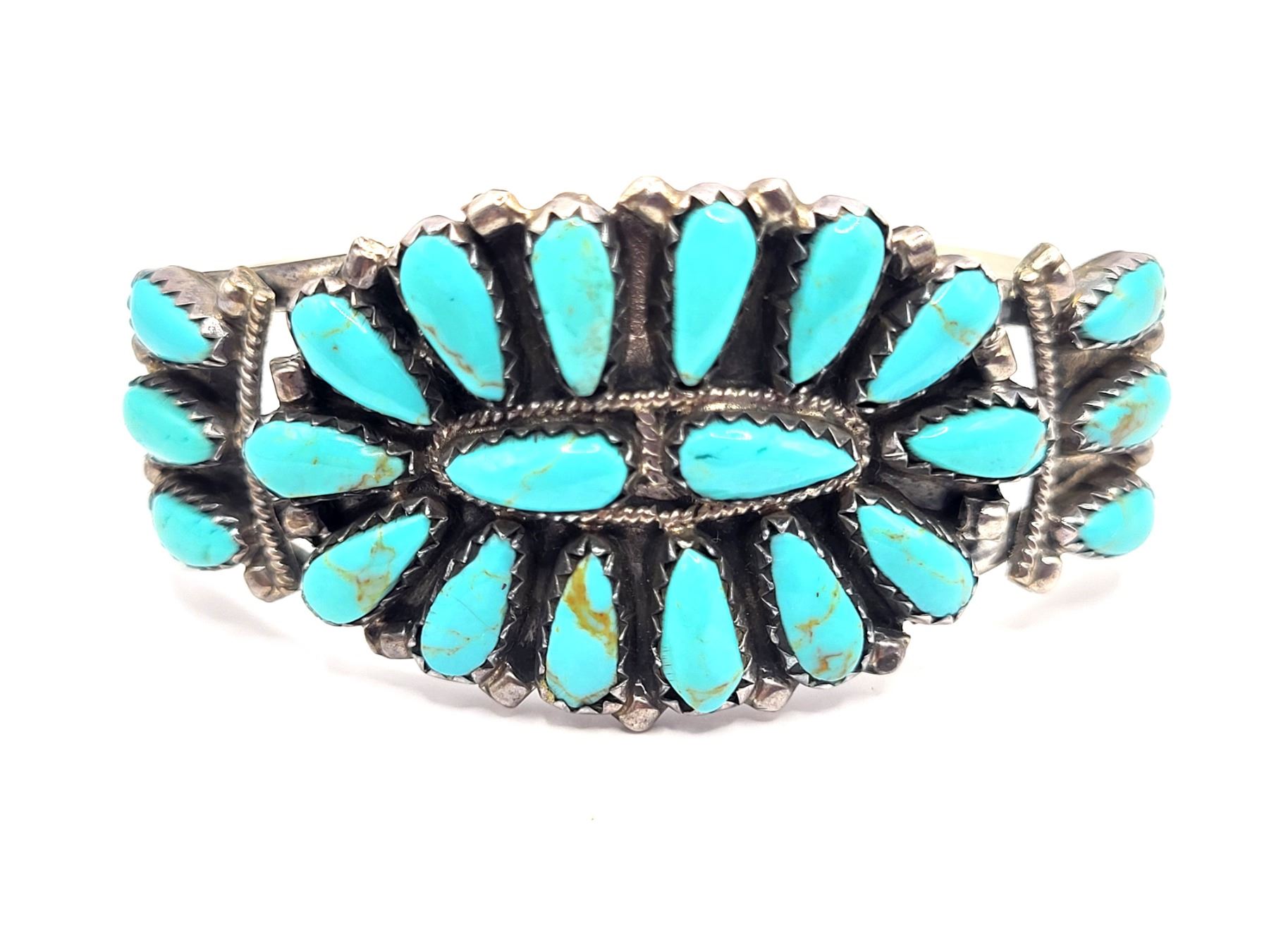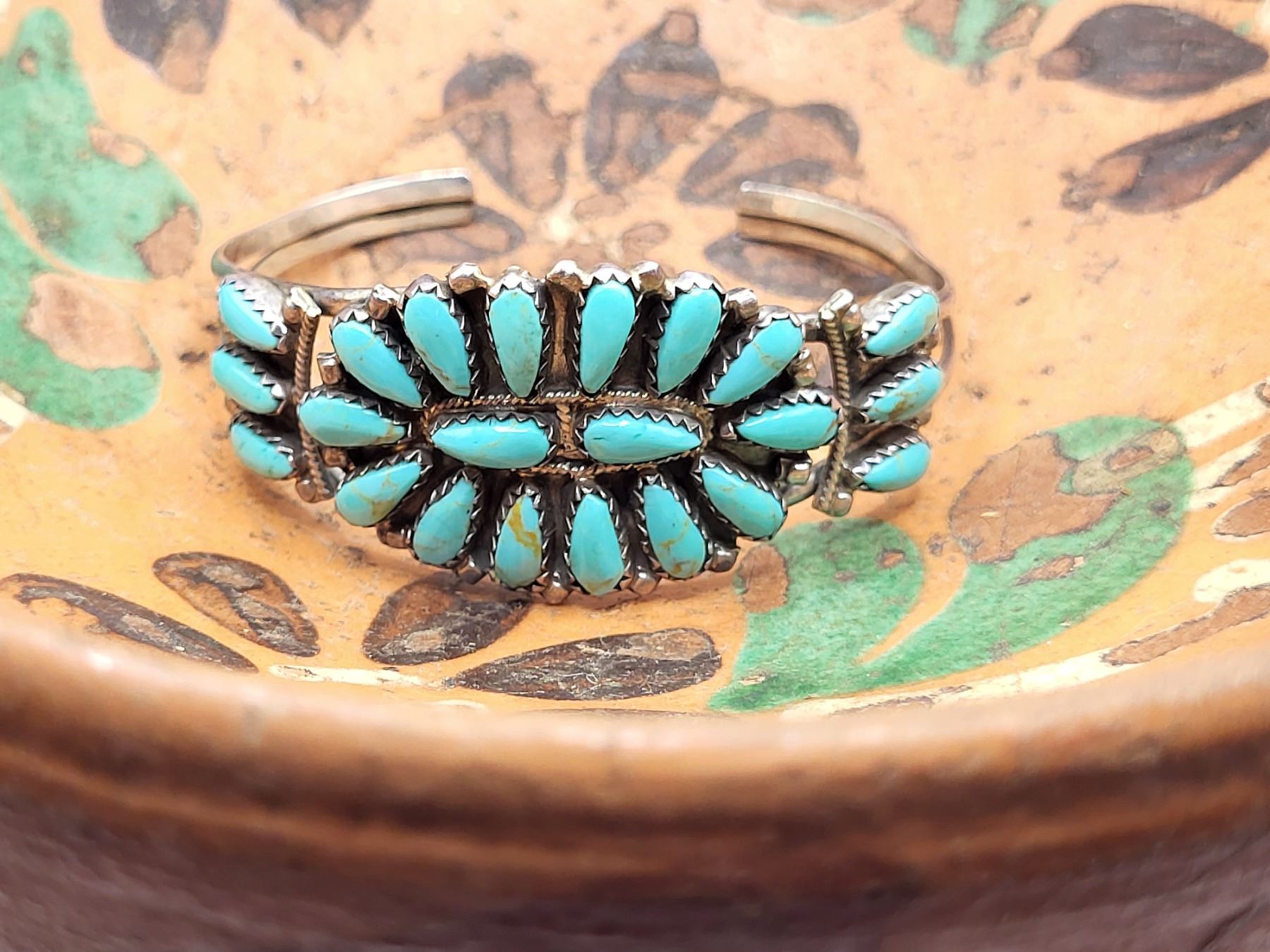 Beautiful turquoise and sterling silver signed P. Jones cuff.