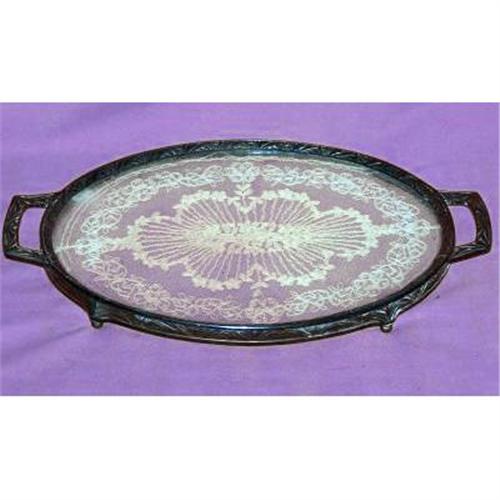 P.N.C.W. Ornate Brass, Lace and Glass Oval Tray#1368132
