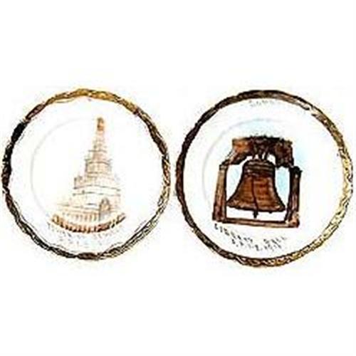 P.P.I.E. SOUVENIR PLATES - Pair -- 1915, 6¼? diameter, hand painted, Tower of Jewels & Liberty Bell