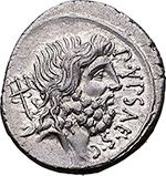 P. Plautius Hypsaeus. Denarius, 60 BC. Obv. P. YPSAE. S.C. Head of Neptune right; trident to left. Rev. CEPIT. Jupiter in quadriga left, holding reins and hurling thunderbolt; C. YPSAE.COS/PRIV in exergue. Cr.420/1a. B.11. AG. g. 4.08 mm. 18.00 R. About FDC. Repubblica Romana. Cr.420/1a. B.11. AG. g. 4.08 mm. 18.00 R.