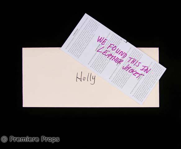 Unopened letter to Holly (Hilary Swank) with note written on a dry cleaning ticket - note reads "We found this in leather jacket" (* condition may vary slightly from photo) (envelope is ~ 9.5 x 4")