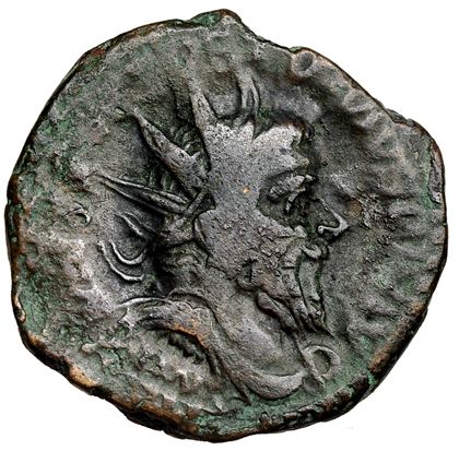 PÓSTUMO. Sestercio. Lugdunum. R/ Arco triunfal con ley.: FELICITAS y en el exergo AVG. RIC-118. CH-47. Cospel irregular. BC/BC+. Escasa.