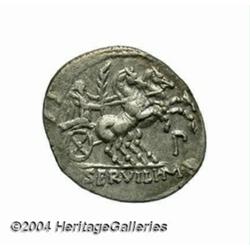 P. Servilius M. f. Rullus. 100 B.C. AR denarius (19 mm, 3.94 g). Bust of Minerva left, wearing aegis and crested helmet / Victory, holding palm in right hand, driving galloping biga right. Crawford 328/1; Sydenham 601; Servilia 14. Toned, near XF. Important notice: Heritage usually auctions material at the rate of 200-250 lots per hour. On some occasions eBay Live bid software or the Internet may not be able to keep up with the pace of the auction. We recommend placing a realistic absentee bid now as insurance to avoid disappointment. Occasionally the auctioneer may eliminate or reject an eBay Live bid, and the auctioneer may also reopen a lot after the close of the eBay live bidding (usually because we missed an audience bid), and may reject your bid even if it shows you as the winning bidder. By bidding via eBay Live, you agree that Heritage may award the lot to another bidder at its sole discretion under the circumstances described above or any other reasonable circumstances. Also please note that all Heritage lots purchased through eBay Live carry a 20% Buyer's Premium. Please make sure you read the Terms and Conditions before you bid.