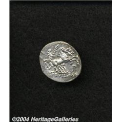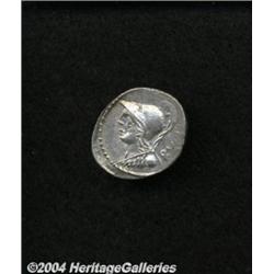 <B>P. Servilius M. f. Rullus.</B></I> 100 B.C. AR denarius (19 mm, 3.94 g). Bust of Minerva left, wearing aegis and crested helmet / Victory, holding palm in right hand, driving galloping biga right. Crawford 328/1; Sydenham 601; Servilia 14. Toned, near XF. <BR><BR><B>Important notice:</B> Heritage usually auctions material at the rate of 200-250 lots per hour. On some occasions eBay Live bid software or the Internet may not be able to keep up with the pace of the auction. We recommend placing a realistic absentee bid now as insurance to avoid disappointment. Occasionally the auctioneer may eliminate or reject an eBay Live bid, and the auctioneer may also reopen a lot after the close of the eBay live bidding (usually because we missed an audience bid), and may reject your bid even if it shows you as the winning bidder. By bidding via eBay Live, you agree that Heritage may award the lot to another bidder at its sole discretion under the circumstances described above or any other reasonable circumstances. Since eBay bids are not shown to us until we open the lot on the floor, we treat those bids just like floor bids. In most cases the floor responds before the eBay bid is presented to us, due to Internet lag time, so for consistency we have made it a policy that floor bids are always considered first over tie eBay live bids. Also please note that all Heritage lots purchased through eBay Live carry a 20% Buyer's Premium. Please make sure you read the Terms and Conditions before you bid.