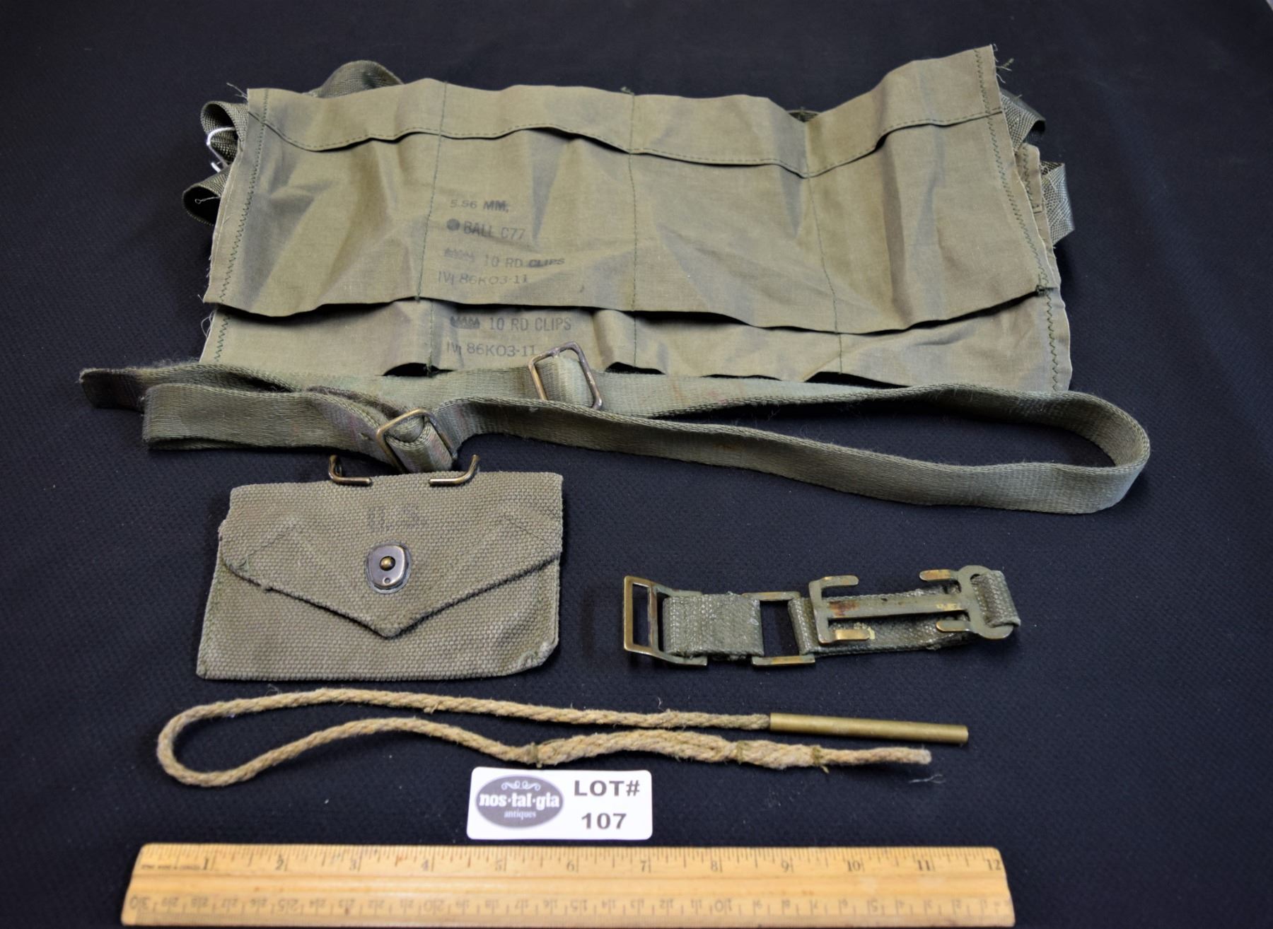 P37 Webbing Extender, Two 556 Cloth Bandoliers, Canvas 45 Cal Spare Parts Pouch,