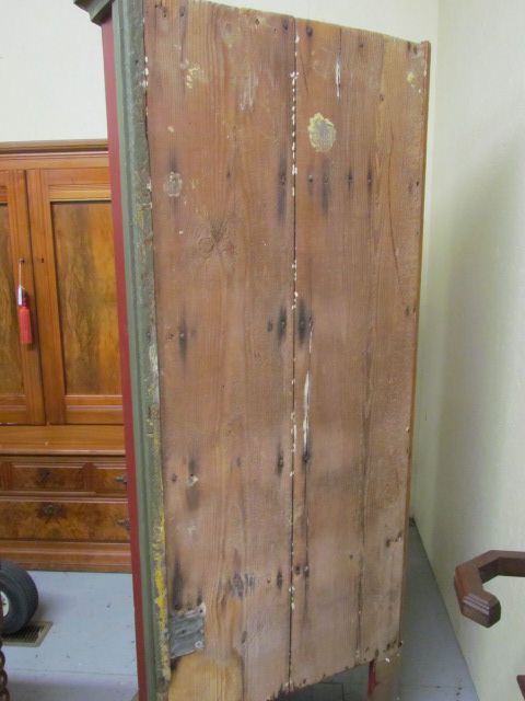19th Century PA Dutch Handpainted Corner Cupboard on legs. Double 3 panel dor opens to 4 shelf interior - Original Board Back 73" x 43" x 21"