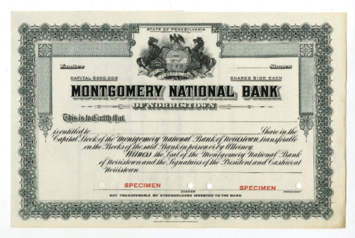 Norristown, Pennsylvania. Odd Shrs, Specimen. Gray. Pennsylvania Arms, XF. Security BNC.