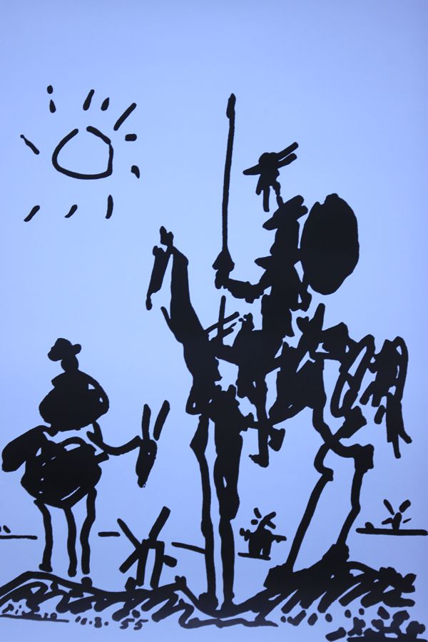 PABLO PICASSO ART **|**|** 24X36INCHES; UNFRAMED; This poster is of Don Quixote, by Pablo Picasso. It is a black and white picture showing Don Quixote on his horse Rocinante, and his squire Sancho Panza on a donkey. Pablo Picasso (October 25, 1881 ; MSRP: $1600