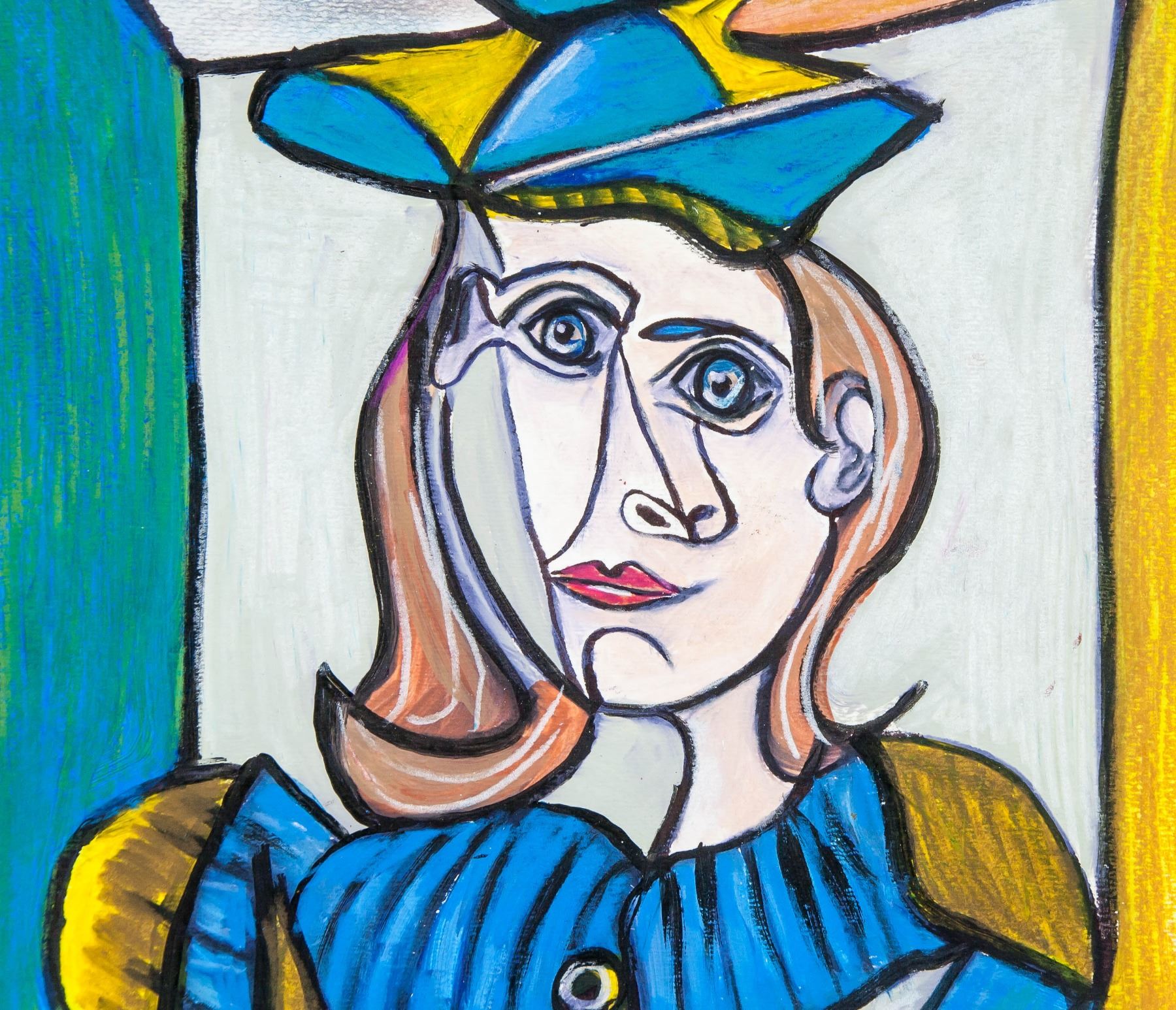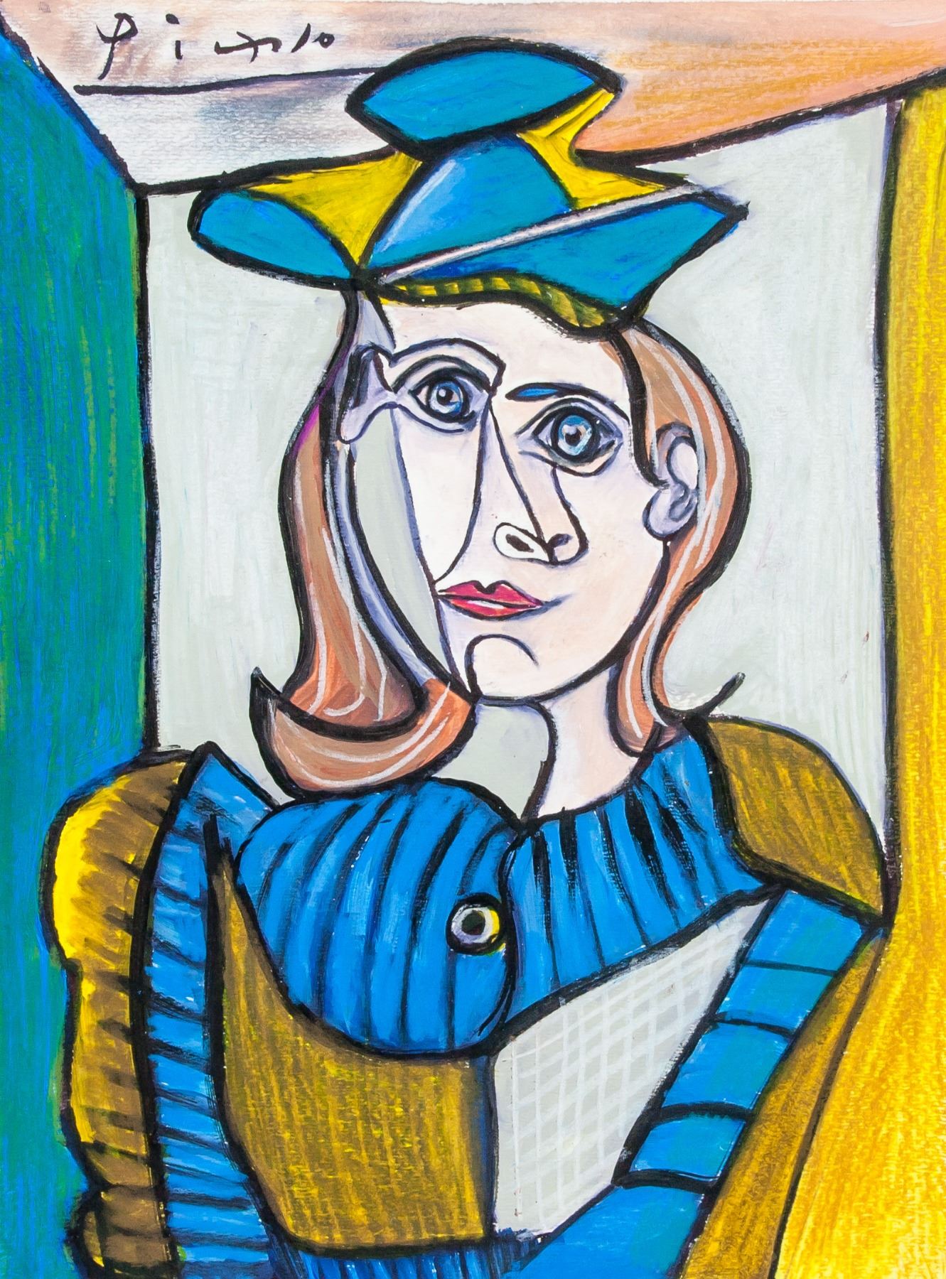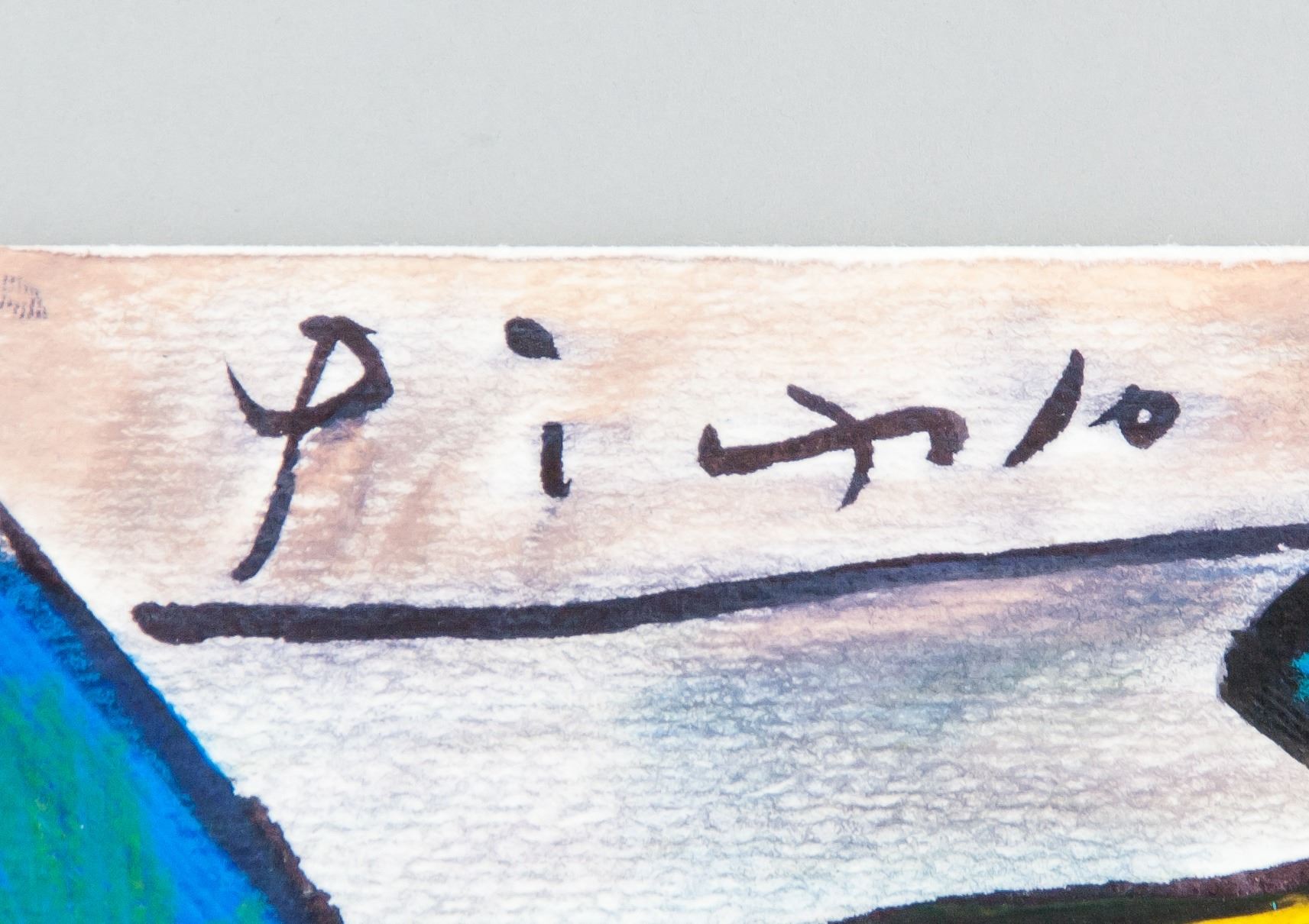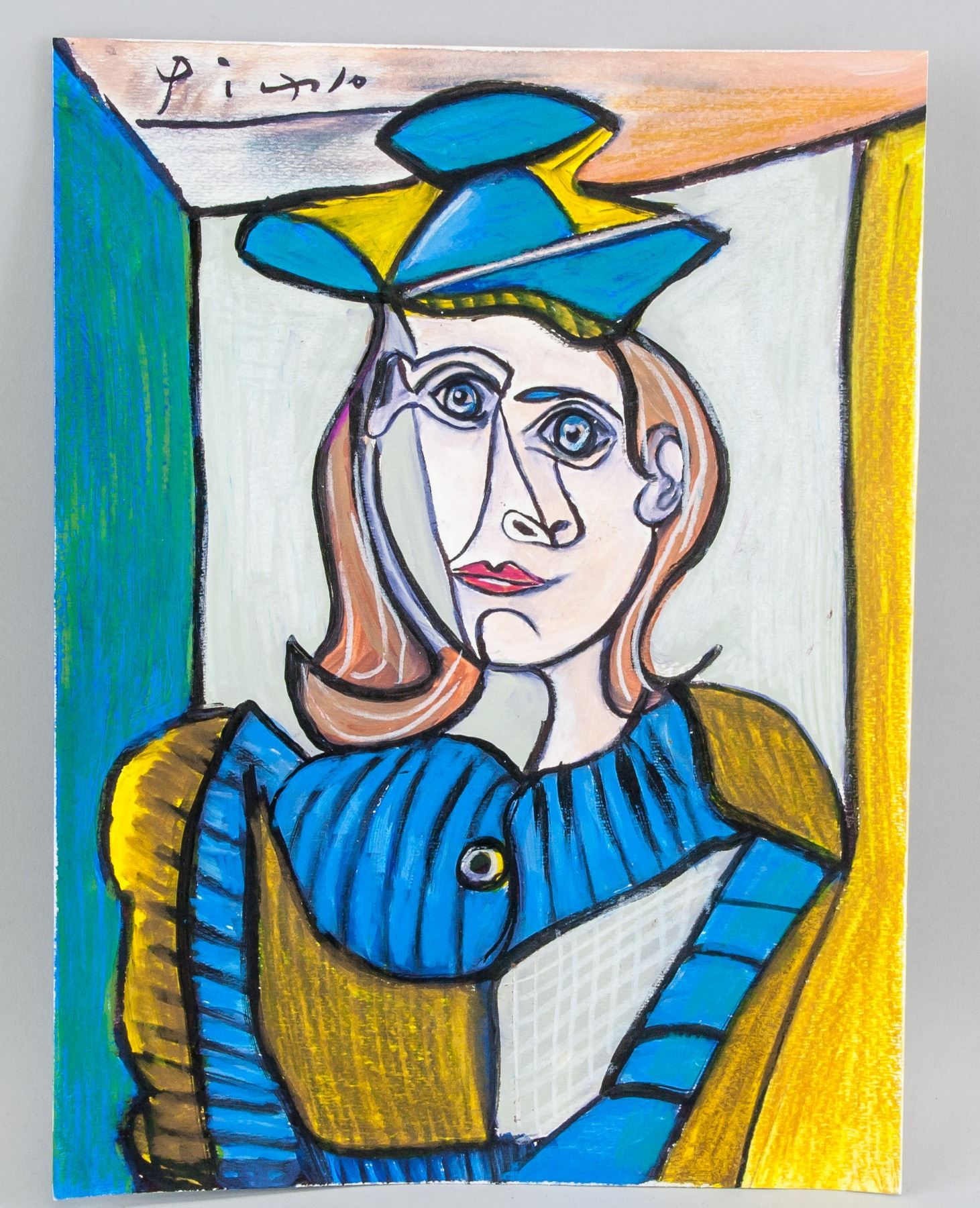 Crayon and Tempera on paper painting, featuring cubist portrait; signed and attr. Pablo Picasso (Spanish, 1881-1973). 11.8 x 9 in. (30 x 23 cm) A prolific and tireless innovator of art forms, Pablo Picasso impacted the course of 20th-century art with unparalleled magnitude. Inspired by African and Iberian art and developments in the world around him, Picasso contributed significantly to a number of artistic movements, notably Cubism, Surrealism, Neoclassicism, and Expressionism. Along with Georges Braque, Picasso is best known for pioneering Cubism in an attempt to reconcile three-dimensional space with the two-dimensional picture plane, once asking, “Are we to paint what’s on the face, what’s inside the face, or what’s behind it?” Responding to the Spanish Civil War, he painted his most famous work, Guernica (1937), whose violent images of anguished figures rendered in grisaille made it a definitive work of anti-war art. “Painting is not made to decorate apartments,” he said. “It’s an offensive and defensive weapon against the enemy.” Picasso’s sizable oeuvre includes over 20,000 paintings, prints, drawings, sculptures, ceramics, theater sets, and costume designs. PROVENANCE: Private Collection (Toronto, ON)