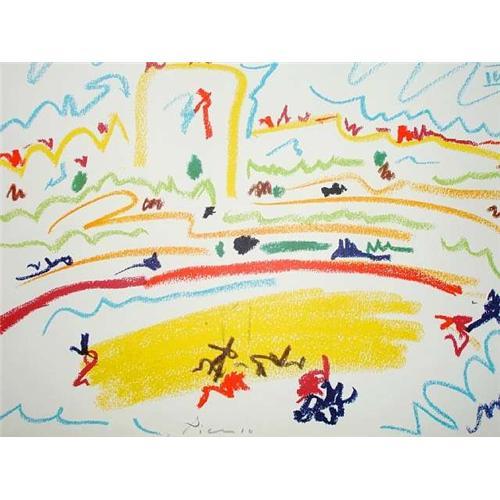 This work is signed by Picasso in pencil in the lower middle. EDITION & PROVENANCE: Galerie Louise Leiris, Paris, editeur: Circle d'Art/Mourlot,Paris. Collection of signed books, special edition Page from the book "TOROS Y TOREROS " 1961.