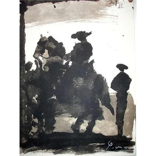 This work is signed by Picasso in pencil in the lower right. EDITION & PROVENANCE: Galerie Louise Leiris, Paris, editeur: Circle d'Art/Mourlot, Paris, Collection of signed books, special edition. Page from the book "TOROS Y TOREROS " 1961.