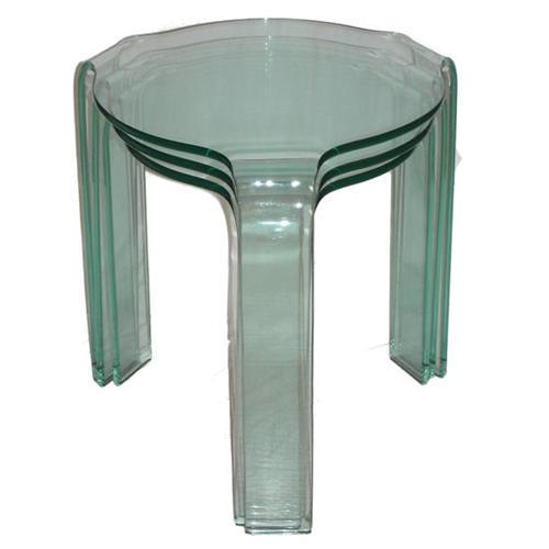 Included here is a set of three Italian nesting glass side tables with waterfall shape, by The Pace Collection Inc., circa 1980. Largest table measures 18.5" across and 19.75" high, and other tables measure roughly 18.25" and 17.25" high. Each are in excellent condition, with no chips or cracks and only light scratches here and there. Designer is unknown, but we know the tables were produced in Italy. They are reminiscient of the set of nesting wooden tables designed by Alvar Aalto. These tables reside on the upper west side of Manhattan ( New York city ) and may be seen by appointment. Thanks for visiting. Please let us know if you have any questions or comments.
