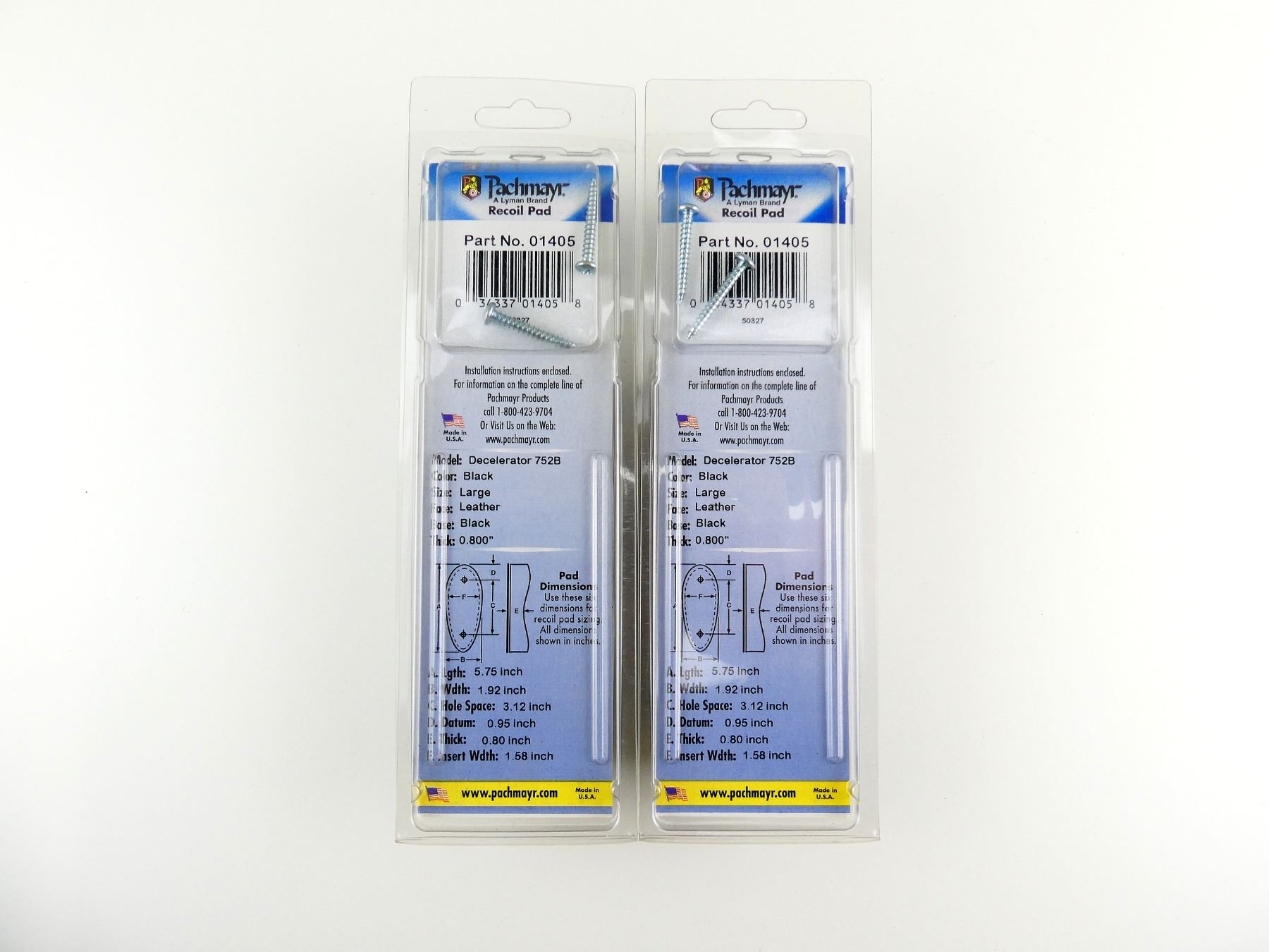 LOT INCLUDES; (2) BLACK LEATHER RECOIL PADS, LARGE 0.8", PART #: 01405, NOS IN ORIGINAL PACKAGING. MAY REQUIRE FITTING. SEE PHOTOS.