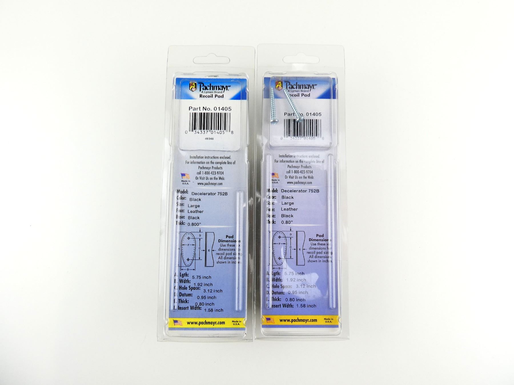 LOT INCLUDES; (2) BLACK LEATHER RECOIL PADS, LARGE 0.8", PART #: 01405, NOS IN ORIGINAL PACKAGING. MAY REQUIRE FITTING. SEE PHOTOS.