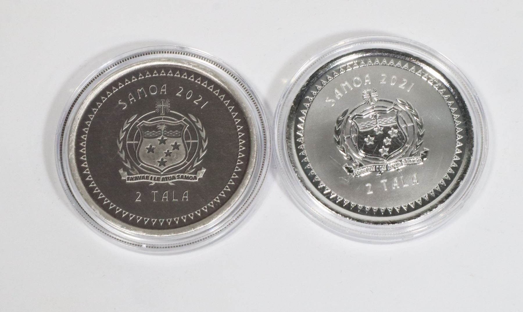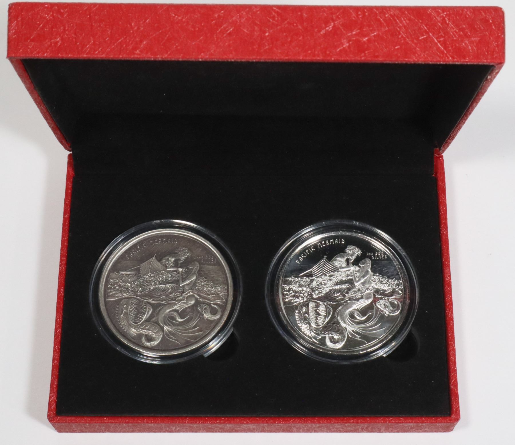 COINS. ONE ANTIQUES AND ONE PROOF LIKE COINS IN CAPSULE AND DISPLAY CASE