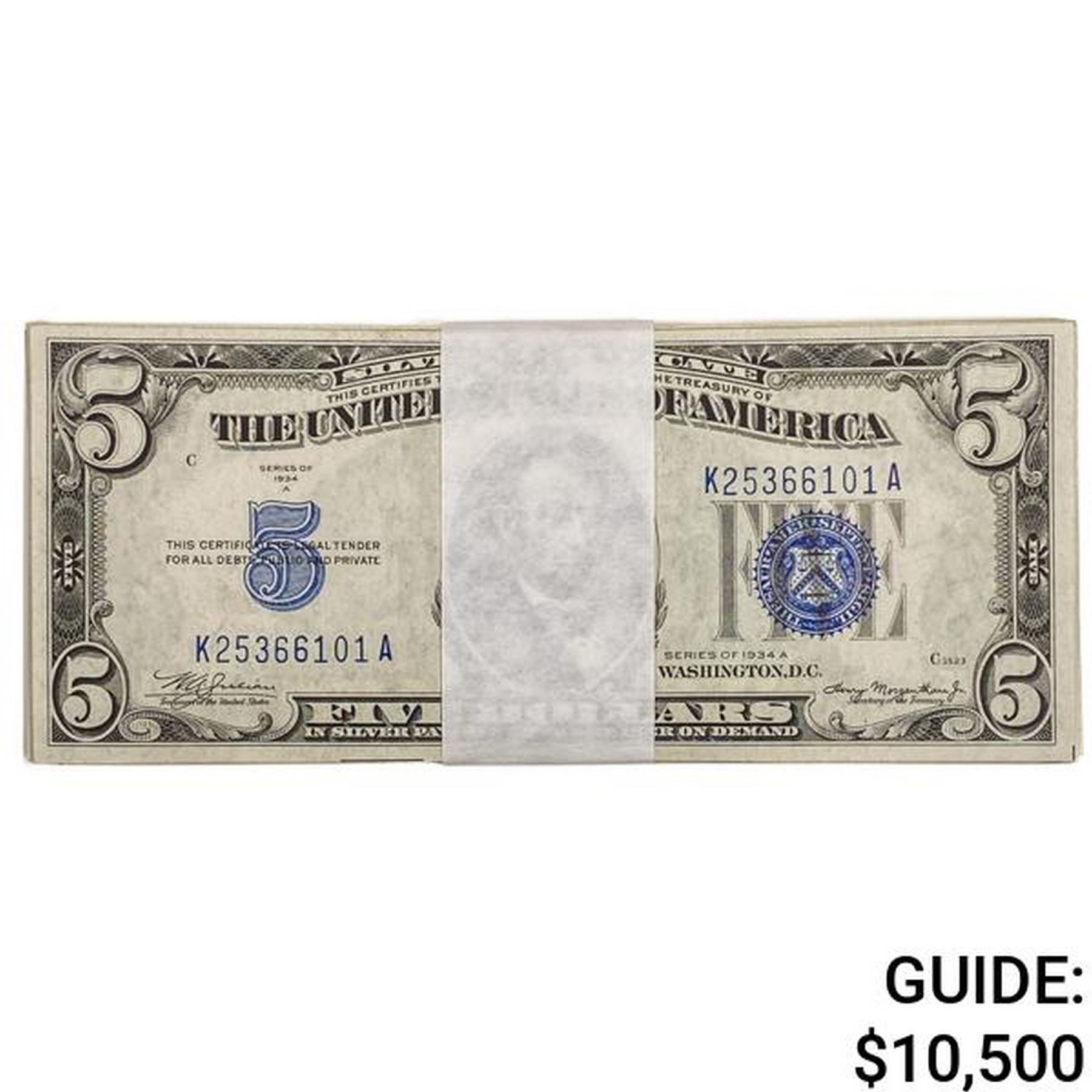 PACK OF (100) 1934 $5 FIVE DOLLAR SILVER CERTIFICATES CURRENCY NOTES GEM UNCIRCULATED